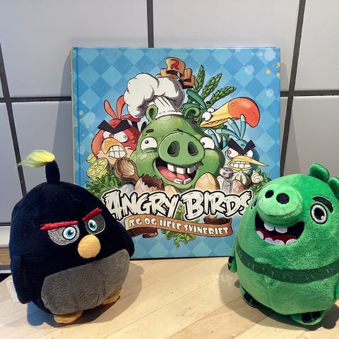 Angry birds æg og hele svineriet, emne: mad og vin, Hardback, indbundet, 73 sider, år 2012, fremstår i pæn stand