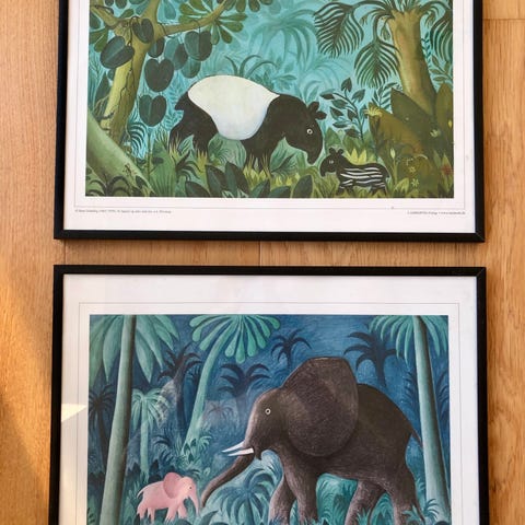 Ældre reproduktion af et junglemaleri af Hans Scherfig, lavet til Land og Folks garantfond. Måler 41 x 54 cm.