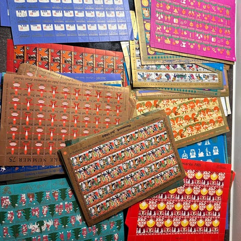 Nogle er hele ark, andre er løse stemplede mærker. Altid opbevaret i hæfte