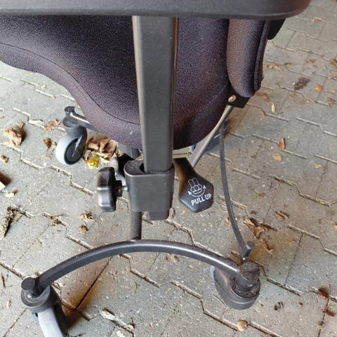 Hvilestol! Med hjul. Stolen kan indstilles med fjernbetjening, stolen kan hæves og tippes så det er let at komme op af stolen.