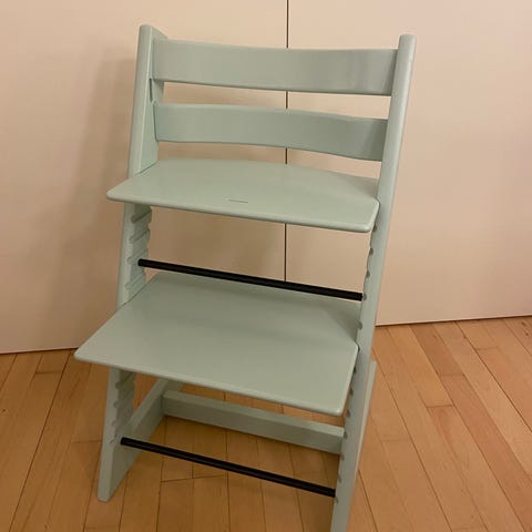 Højstolen har justerbart sæde og fodplade, så den kan tilpasses barnets højde og bruges ved spisebordet eller andre borde i hjemmet. Vi har brugt stolen til vores børn fra ca 6 måneders alderen.