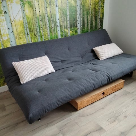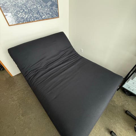 Magasin under sengen til div. sengetøj. Vippes med fjederbeslag.