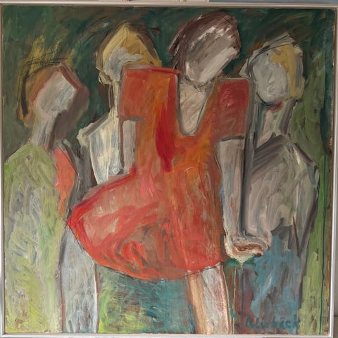 Smukt oliemaleri 60x40 cm af svenske Marielle Göthberg med titlen “Nattblommor”, 2024, signeret og dateret på bagsiden.