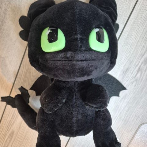 Bamse plysdyr sæt med flere dragefigurer i sort og hvid. Sættet består af både større og mindre plysdyr i samme stil, alle med broderede øjne og detaljerede vinger og haler. Egnet som legetøj til børn eller som pyntegenstand på værelse eller hylde.