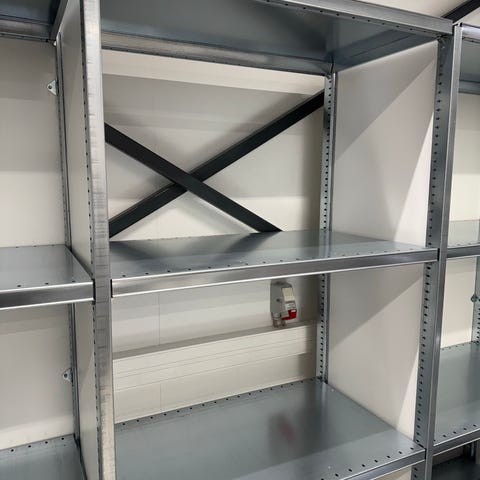 solid reol med stål sider og massiv træ hylder i et stykke, 2 meter høj, 2 meter lang, 8o cm dyb