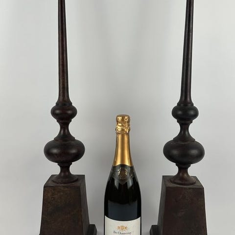 Pairt metalvægudskæringer malet og forgyldt, formet som delfiner og en trefork, 120 cm høj, 24 cm bred og 8 cm dyb, stammer fra Frankrig og dateret til 1950'erne, i god brugt stand med mindre aldersrelaterede mærker og pletter. Klik på den blå "gå til varen" knap, for at købe eller byde på denne vare. Den samlede pris vil blive vist inden du afgiver dit bud.
