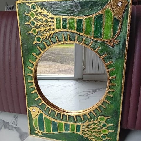 Grøn filt på bagsiden af spejlet.