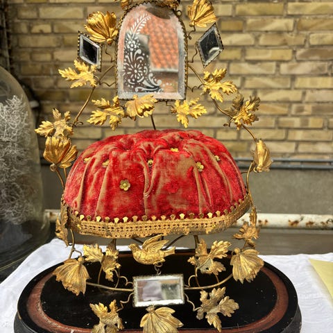 Napoleon III smykkeskrin i messing og glas, dateret 1850–1900, i god stand med mindre aldersrelaterede tegn; mål ca. 7 cm høj, 8 cm bred og 7 cm dyb, oprindelse Frankrig. Klik på den blå "gå til varen" knap, for at købe eller byde på denne vare. Den samlede pris vil blive vist inden du afgiver dit bud.