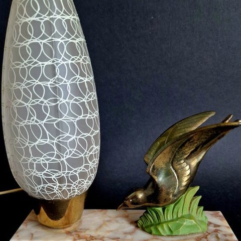 Bordlampe - Terrakotta, Tekstil - Rustik lampe 1970