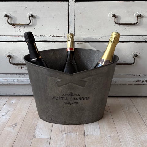 Toppen polstret i sort syntetisk læder, med Moet & Chandon-emblemet indgraveret i guld, tilføjer et strejf af luksus og eksklusivitet.