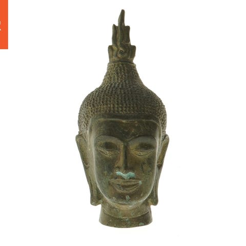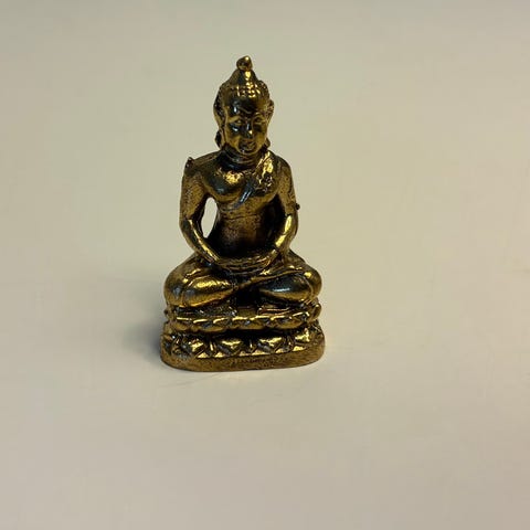 Antik japansk støbt metal Buddha-figur i meditativt lotusepose, med centralt metalvæske og reservoir, oprindeligt en olie- eller røgelsebrænder, dateret ca. 1880–1940, oprindelse Japan, i god brugt stand med mindre alders-tegn, fra privat samling, 8 cm bred, 6 cm dyb, 10,5 cm høj, i funktionsdygtig stand. Klik på den blå "gå til varen" knap, for at købe eller byde på denne vare. Den samlede pris vil blive vist inden du afgiver dit bud.