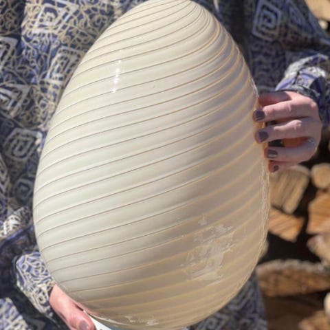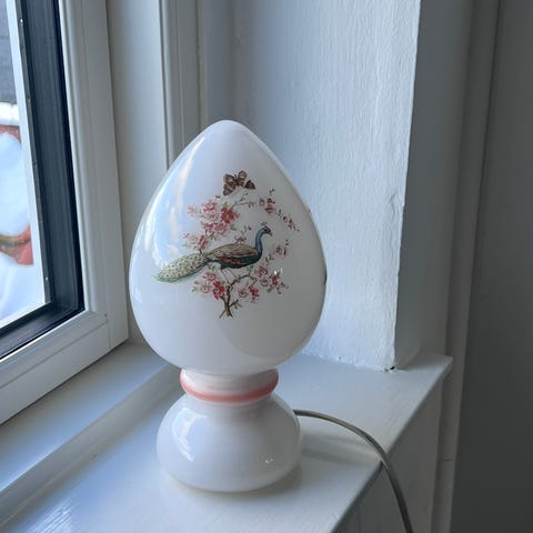 Moderne glasbordlampe, model Ei, fra Europa, 1980–1990, i god brugt stand med mindre tegn på ældning, 30 cm høj, 22 cm i diameter, med kabel og af/på-kontakt og én fatning. Klik på den blå "gå til varen" knap, for at købe eller byde på denne vare. Den samlede pris vil blive vist inden du afgiver dit bud.