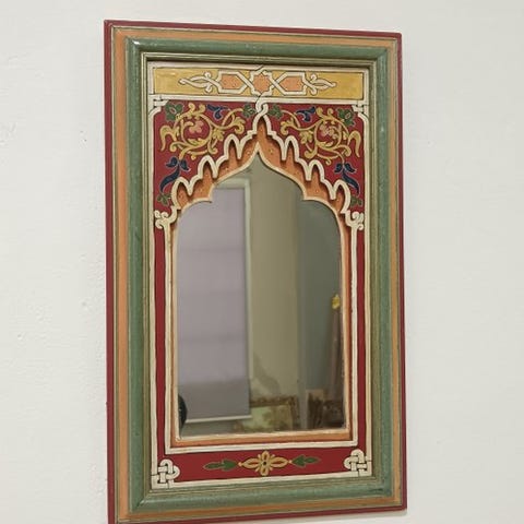 Dekorativt spejl i maurisk/orientalistisk stil, tilskrevet nordafrikansk håndværk, sandsynligvis Marokko.
