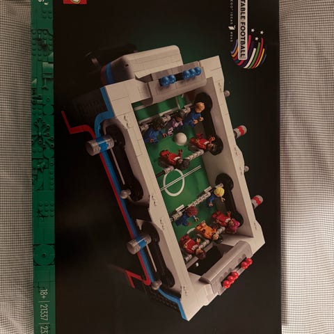 Udgivet under den fan-designede LEGO Ideas-linje tilbyder dette sæt et fuldt spilbart foosballbord bygget helt af klodser. Med 2 339 stykker har det bevægelige stænger, glidende scoretællere, og et kompakt, men funktionelt design, der er perfekt til spilleaftener eller udstilling. Med en bredde på 41 cm er det fyldt med interaktiv sjov i en smart, pladsbesparende opbygning.