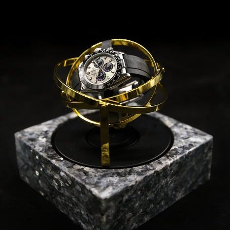 Gyrowinderet er skabt til perfekt at efterligne bevægelsen af et Tourbillon, en af de vigtigste opfindelser i urmagerhistorien. Vi bringer dig en høj-teknologisk urværk, der holder dit ur spændt og udstillet på en elegant måde, uanset om det er en Rolex Daytona, Submariner, Omega
