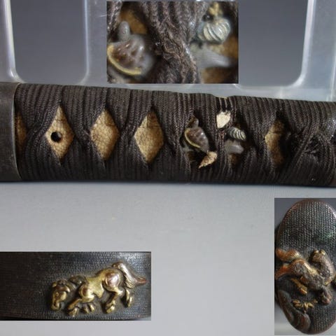 Seneste Edo-periode blæk på silke hængende rulle med Dragon Crossing Mount Fuji af Kano Shōsen'in Tadonobu, 193,5 cm høj og 53 cm bred, vægt 1,25 kg, løst i rimelig stand med forbrændinger og pletter samt buget montage; omrammet for flere årtier siden. Klik på den blå "gå til varen" knap, for at købe eller byde på denne vare. Den samlede pris vil blive vist inden du afgiver dit bud.