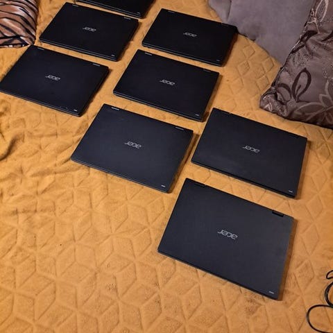 Pænt parti bærbare computere vedrørende Acer TravelMate B114 (8×) med originale opladere inkluderet; alle leveret er ens med de samme specifikationer. Processor.