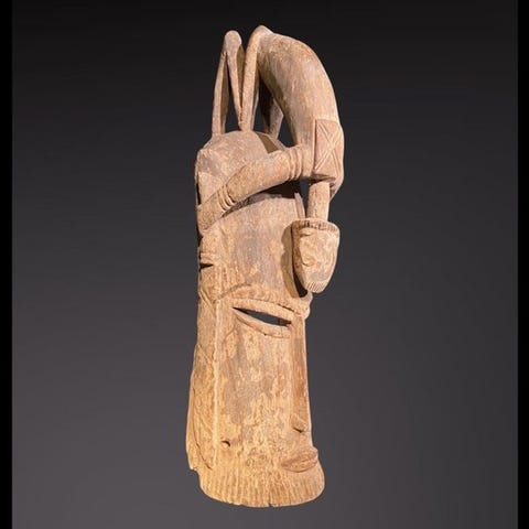 Exceptionel Dogon-snedans Maske, malisk træmaske fra Dogon-kulturen, 35 cm høj, 14 cm bred, 16 cm dyb, 0,6 kg, kommer fra privat samling, i god stand, 1 genstand, solgt uden fod, certifikat fra Galerie des Dominicains følger med. Klik på den blå "gå til varen" knap, for at købe eller byde på denne vare. Den samlede pris vil blive vist inden du afgiver dit bud.
