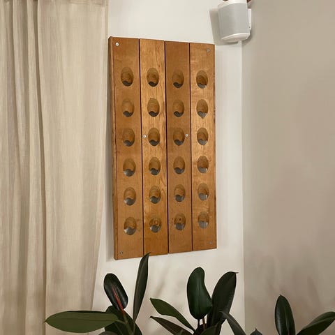 En prestigefuld præsentation (9 flasker): Med en kapacitet på 9 flasker tilbyder dette stykke en perfekt symmetri over tre niveauer bestående af tre flasker. Denne konfiguration er ideel til at fremvise dine mest værdsatte årgange. Hver flaske hviler forsigtigt i en buet messingstøtte, designet til at fremhæve dine fineste