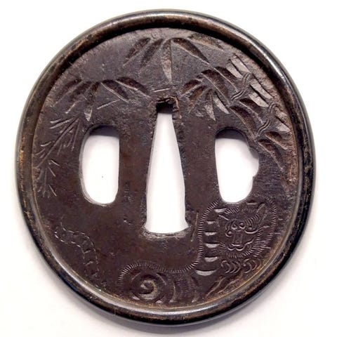 En jerns sculpture fra Shōwa-perioden i Japan, med titlen Lion riding on a ball 玉乗獅子 af Aone 碧嶺, måler 43,5 cm i højden, 54,3 cm i bredden og 33,8 cm i dybden, uden stand, i god stand med brugsspor som ridser, snavs, afskalling og stød og dekorationen på højre forside mangler. Klik på den blå "gå til varen" knap, for at købe eller byde på denne vare. Den samlede pris vil blive vist inden du afgiver dit bud.