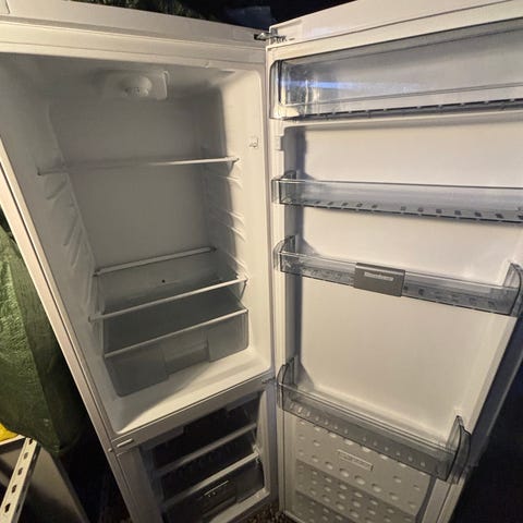 Køl/fryseskab Blomberg Hvid lavenergi med glas hylder i køleskabet og 3 skuffer i fryseren højde 152cm bredde 54cm dybde 57cm pæn og velholdt