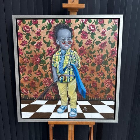 La Sape er et samtidskunstmaleri i akryl fra 2014 af JP Mika & associes fra Congo, håndsigneret, i god stand, begrænset udgave (124 x 105 cm, 5 kg), leveres med ramme og stand. Klik på den blå "gå til varen" knap, for at købe eller byde på denne vare. Den samlede pris vil blive vist inden du afgiver dit bud.