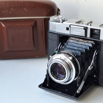 Foldbart kamera, plader i formatet 9x12 cm eller 13x18 cm. Hus i træ. Front- og fokusplanlukkere. Foldbar søger. Lysstærk søger. Standardobjektiv med to søjler.