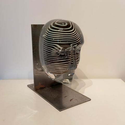 Den glaskulptur, der vises på billedet, er „Brains” (Hjerner), af den kendte svenske kunstner Bertil Vallien for glasværket Kosta Boda.