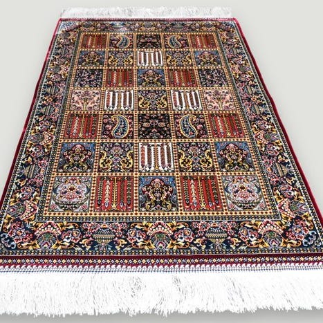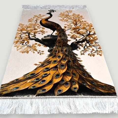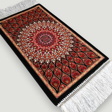 Et elegant og fint detaljeret tæppe med et rigt, detaljeret mønster. Fremstillet med præcision og afsluttet med raffinerede, håndlavede kanter, giver dette stykke et luksuriøst udseende og en følelse.