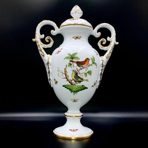 Askebæret er håndmalet og har det kendte og meget eftertragtede Rothschild Bird-decor med modelnummer 7700.