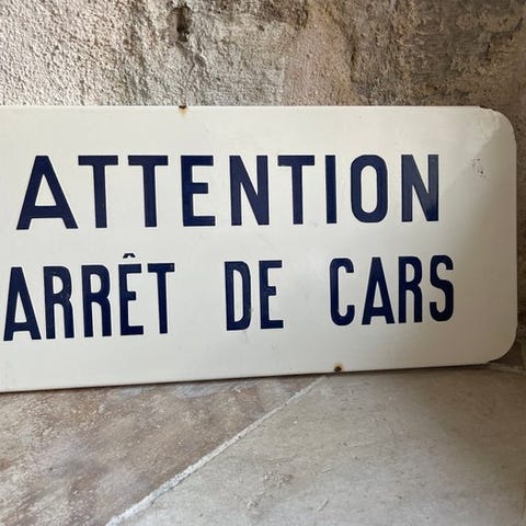 Emaljeplade fra Frankrig fra 1960'erne/1970'erne, 30 × 30 cm, med kunstværket Sortie de Voiture / Prière de ne pas Stationner, i pæn stand med enkelte slid og pletter som følge af alder, original/officiel. Klik på den blå "gå til varen" knap, for at købe eller byde på denne vare. Den samlede pris vil blive vist inden du afgiver dit bud.