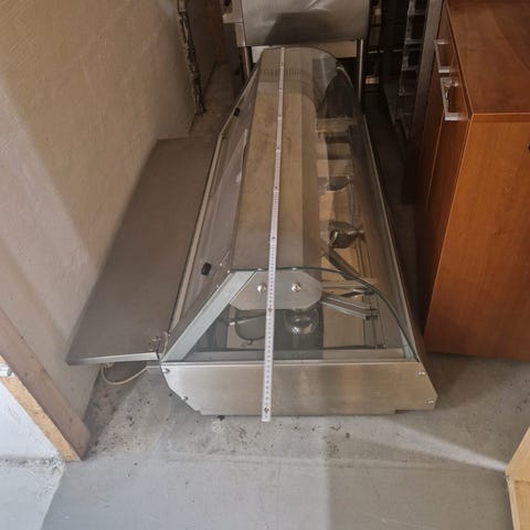 IFI drop-in køleudstillingsskab i stål, Italien, 120 cm høj, 280 cm bred, 90 cm dyb, i god brugt stand med mindre alderstegn og pletter, beregnet til udstilling, fuldt funktionelt, kan beklædes efter ønske. Klik på den blå "gå til varen" knap, for at købe eller byde på denne vare. Den samlede pris vil blive vist inden du afgiver dit bud.