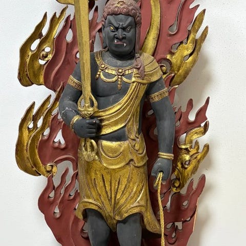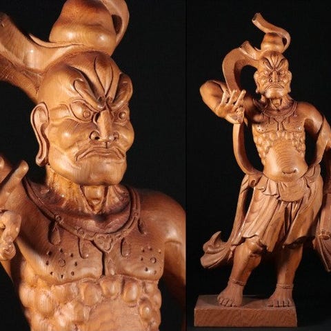 Bronzestatue af Prins Shotoku af Hata Shokichi, fremstillet i 1936 (Shōwa 11), 18,8 cm høj, 6,8 cm bred, 5,8 cm dyb, vægt 780 g, fra Japan, i god stand, leveres uden stand. Klik på den blå "gå til varen" knap, for at købe eller byde på denne vare. Den samlede pris vil blive vist inden du afgiver dit bud.