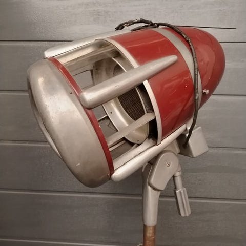 Rade vægmonteret professionel føntørrerhjelm fra 1950’erne–1960’erne, metal og ABS, oprindelse Italien (Lombardia), model A braccio snodato, 180 cm høj, 40 cm bred, 40 cm dyb, vægt 16 kg, i god brugt stand med mindre tegn på alder og pletter. Klik på den blå "gå til varen" knap, for at købe eller byde på denne vare. Den samlede pris vil blive vist inden du afgiver dit bud.