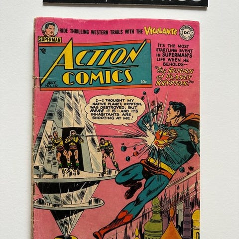 DC Comics Presents, Første udgave, nummer 47 Newsstand Edition: From Eternia — with Death!, første optræden af He-Man og Skeletor i tegneserier; Curt Swan (indre) med Mike DeCarlo, Ross Andru på forsiden; hæftet binding; år 1982; sprog Engelsk; karakter 9,8; tilstand næsten perfekt. Klik på den blå "gå til varen" knap, for at købe eller byde på denne vare. Den samlede pris vil blive vist inden du afgiver dit bud.