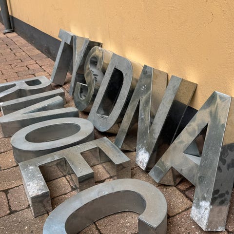 Fjorten blå emaillerede bogstaver i metal med industrielt design, dateret 1900–2000, hver cirka 20 cm høj og 12 cm bred, brugt stand med sandsynlige små mangler. Klik på den blå "gå til varen" knap, for at købe eller byde på denne vare. Den samlede pris vil blive vist inden du afgiver dit bud.