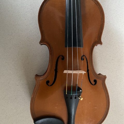 Særdeles håndbygget violin af luthier Ruben van der Kleij fra Pijnacker (Nederland) under mærket Rubinsky guitars and Violins. I en særlig grøn-brun farve med tobacco burst. Træsorter, der er brugt: figureret ahorn, fyr og ebenholt. Wittner stemmeknapper, ingen pickup. Limet hals, se billederne for halsforbindelsen. Alt originalt, ingen skader eller reparationer nødvendig. I god spillemæssig tilstand. Inkluderet er en flot kuffert/gigtas fra mærket Leonardo. Mål: krops længde 36 cm, talje 11,5 cm (4/4 violin).