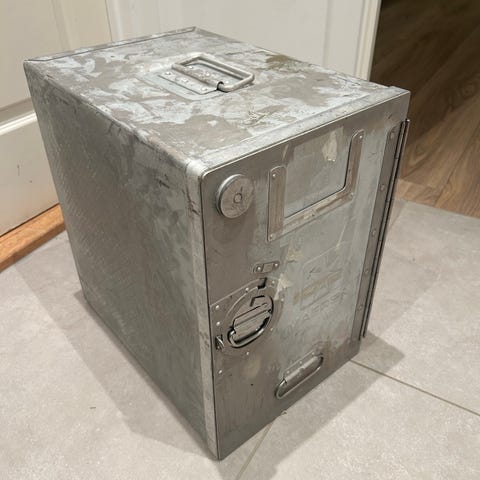 Denne flightcase blev brugt til at fragte måltider og nogle gange også dokumenter om bord på en Britannia Airways-flyvning.