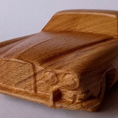 Elegant træmodel inspireret af de ikoniske europæiske sports Cabriolet fra 90'erne. Fremstillet i massivt kirsebærtræ og færdiggjort med naturlig olie, fremhæver modellen træets åretegning og varme tone, hvilket giver et elegant dekorativt stykke til samlere og bilentusiaster.