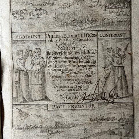 Trykt i 1593, har dette yderst sjældne Arestum Curiae Parlamenti Normaniae endelig den håndskrevne attest af autentisk transskription med notariel underskrift af notaren Chiesement. En kopi på 50/100 (cirka?), underskrevet og datert, næsten unik.