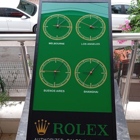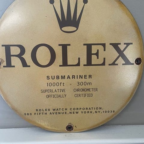 ROLEX OPLYST SKILT MED UR – unikt og vidunderligt aluminiumsskilt til Rolex-elskere.