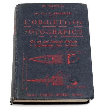 Projiceringer. Udgave Ulrico Hoepli, Librario della Real Casa – Milano. Format 10,5x15 cm. Pragtfuld bog på italiensk på 447 sider med hårdt omslag. Den er komplet, med 141 graveringer, med spektakulære illustrationer af projektører, magiske lanterner, optikker og fotografiske tilbehør. Et meget eftertragtet og sjældent hånd- bog, dyrebar vidnesbyrd om fotografiets pionerstatus i begyndelsen af 1900-tallet i Italien, håndbog dedikeret til tidens adel og velstående, som havde råd til at lære en teknik, der kunne hæve dem i rang. I slutningen af håndbogen er der en oversigt over de 500 håndbøger udgivet