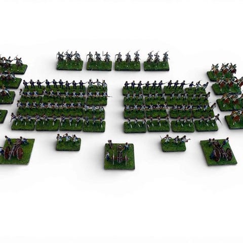 Gardeartilleri: 4 kanoner komplet med bemanding i dynamiske positioner. 4 kanoner og 12 figurer