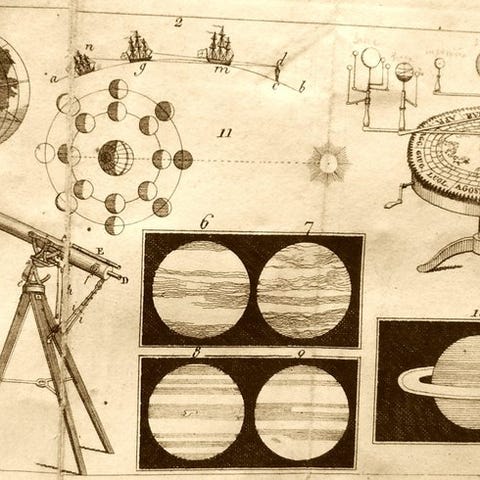 Audrich Everardo. Filosofiske ecloger og andre poetiske kompositioner, hvor der forklares flere meninger om den moderne fysik. Firenze, hos Giovan Paolo Giovannelli, 1753. Første udgave. Rar udgave af den berømte værk om fysik og astronomi af den kendte livornoanske professor i matematik og naturvidenskab. Behagelig samling af lyriske digte, hvori der forklares forskellige fysiske og astronomiske fænomener, herunder kometens kurs og natur, tidevands strøm og tilbageslag, Jupiter, Merkur og månen, helt frem til påståede beboere af andre planeter. Rustikt kartonbind fra tiden. Smuk illustration med astronomiske figurer indgraveret på