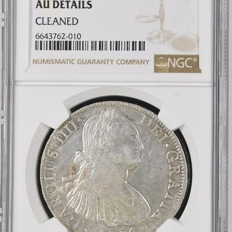 1817 Potosí PJ otte reales mønt, bedømt af NGC som AU55, præget under Ferdinand VII af Spanien i sølv, nominel værdi 8 Reales. Klik på den blå "gå til varen" knap, for at købe eller byde på denne vare. Den samlede pris vil blive vist inden du afgiver dit bud.