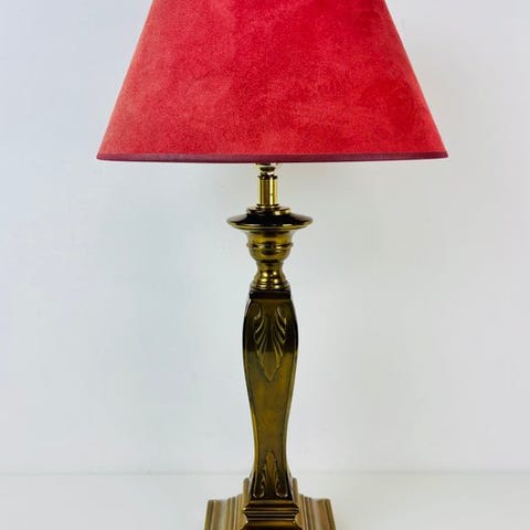 Tilley bordlampe i rød messing og metal med træhåndtag, produceret i England i 1950’erne–1960’erne, i god stand med få aldersrelaterede spor, i drift og med E27-sokkel. Klik på den blå "gå til varen" knap, for at købe eller byde på denne vare. Den samlede pris vil blive vist inden du afgiver dit bud.