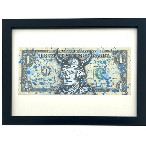 Fantastisk kunstværk på en dollarseddel, skabt af den populære WhyCreationz. Ved hjælp af mixed media-teknikker som stencil og akrylmaling har kunstneren skabt graffiti i street-stil med Statue of Liberty på dollarsedlen. Færdiggjort til perfektion er dette et fremragende stykke til samling eller som gave.