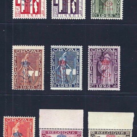 Fra Belgien, de fire store Orvalblokke med overtryk i postfris stand, katalogiseret OBP/COB BL22/25, fra 1942. Klik på den blå "gå til varen" knap, for at købe eller byde på denne vare. Den samlede pris vil blive vist inden du afgiver dit bud.