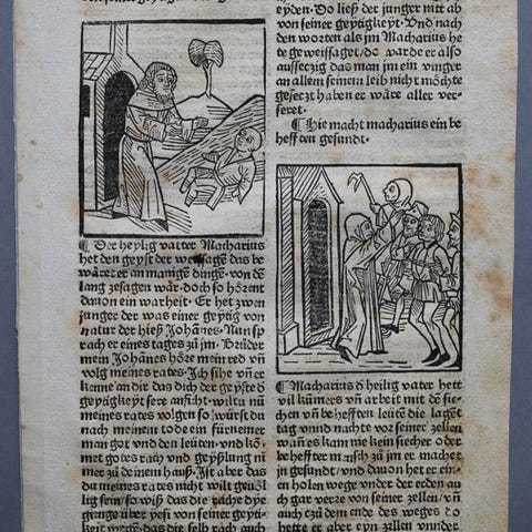 Manoscrito Etiope Ge‘ez er et illumineret håndskrift skrevet i Ge'ez af en anonym kopiist, 142 sider, 141 x 108 mm, læderindbinding, Etiopien XVIII–XIX århundrede, i god stand med håndfarvede illustrationer. Klik på den blå "gå til varen" knap, for at købe eller byde på denne vare. Den samlede pris vil blive vist inden du afgiver dit bud.