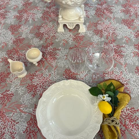 Luksuriøs dug rigeligt dekoreret af Manifattura San Leucio i blanding af silke med gamle klassiske medailloner.